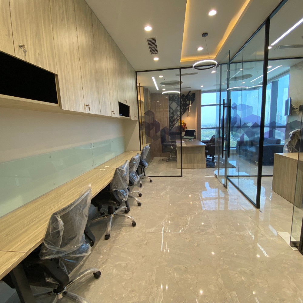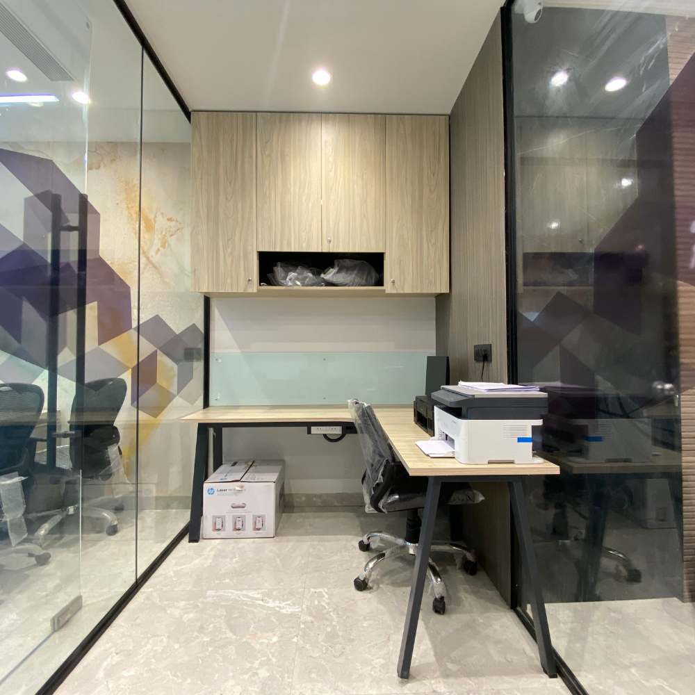 Discover a beautifully designed 850 sq. ft. office interior at ATS Bouquet, Noida, where modern aesthetics meet smart functionality. This workspace features well-organized workstations, elegant cabins, a welcoming reception area, and efficient storage solutions that maximize space and comfort. Thoughtfully planned interiors, premium finishes, and balanced lighting create a professional environment that enhances productivity and collaboration.